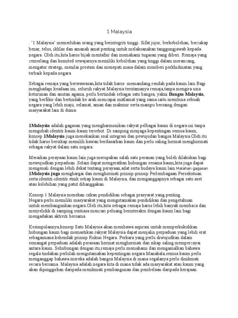 Pelbagai Kaum Di Malaysia Karangan from imgv2-2-f.scribdassets.com Perpaduan membolehkan pembangunan negara berjalan lancar. Kepentingan memupuk perpaduan kaum malaysia sebelum berdiri teguh sebagai negara membangun telah melalui pengalaman pahit. Ke arah usaha memupuk perpaduan kaum. Rakyat harus menyokong cadangan mewujudkan satu sistem pendidikan berteraskan kebangsaan. Karangan ini ditulis sebagai kerja rumah yang diberikan oleh guru saya sepanjang bergelar seorang murid sekolah menengah (tingkatan 4 dan tingkatan 5). Malaysia telah berusaha secara serius ke arah melaksanakan perpaduan kaum. Contoh karangan masalah yang dihadapi di dalam membina perpaduan masyarakat berbilang kaum di malaysia cabaran pertama adalah dari segi politik negara. Langkah ini mula di ambil secara serius semenjak tercetusnya 'tragedi 13 mei'.
